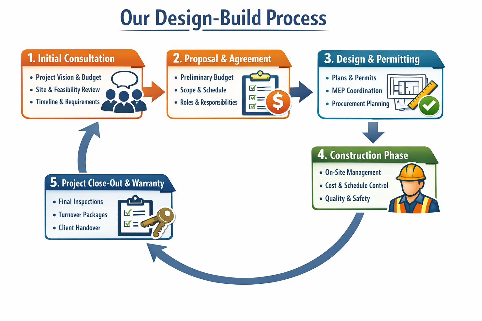 Many of our clients return to us because we approach each project as a partnership. Our focus on integrity, experience, and disciplined execution supports repeat work and long-term collaboration.
